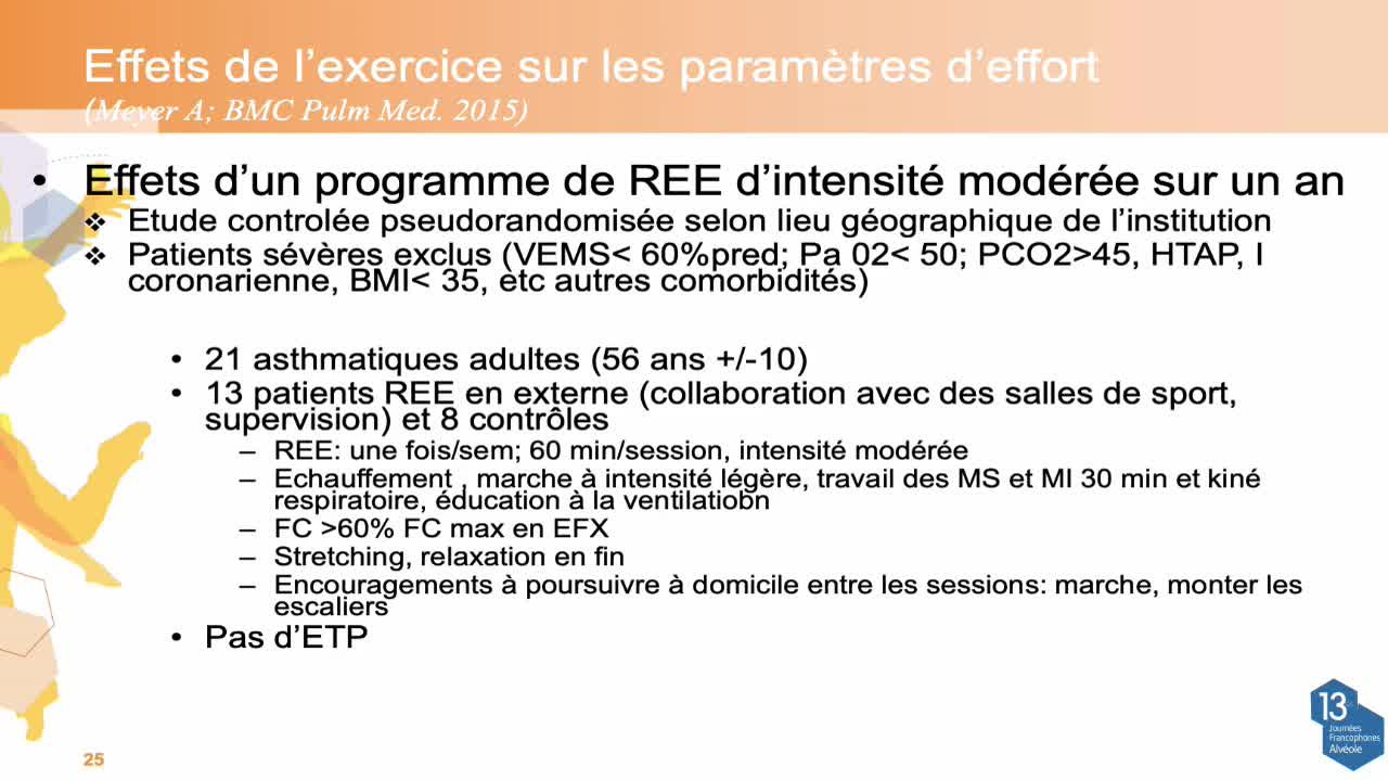 Au-delà de la BPCO, il est aujourd'hui bien admis que la réhabilitation respiratoire a montré des bénéfices importants. Cette session permet de faire le point sur nos connaissances et nos pratiques dans les pathologies telles que la transplantation pulmonaire, l'asthme et la mucoviscidose.